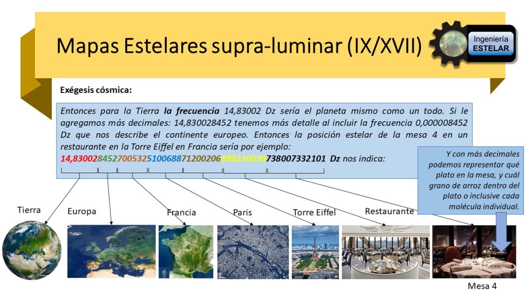 Por último, haremos una breve referencia a los mapas estelares utilizados para realizar el viaje supra-luminar que no es más que un mapa de frecuencias. En las siguiente imagen vemos el grado de precisión que puede alcanzar una nave que viaje de manera instantánea a cualquier lugar del universo:
